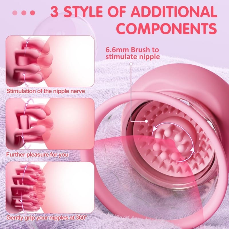 According to the data of the first half of 2025: 85.6% of women like the stimulation brought by female breasts, and the breast massager in 2025 sex toys has also been sought after and loved. nipple toy has been upgraded in all aspects, this vibrator utilizes the suction of pump and the stimulation concept of massage, Suction cup wraps around breast, 3 different types of brush heads give you the stimulation of different sensitive spots.