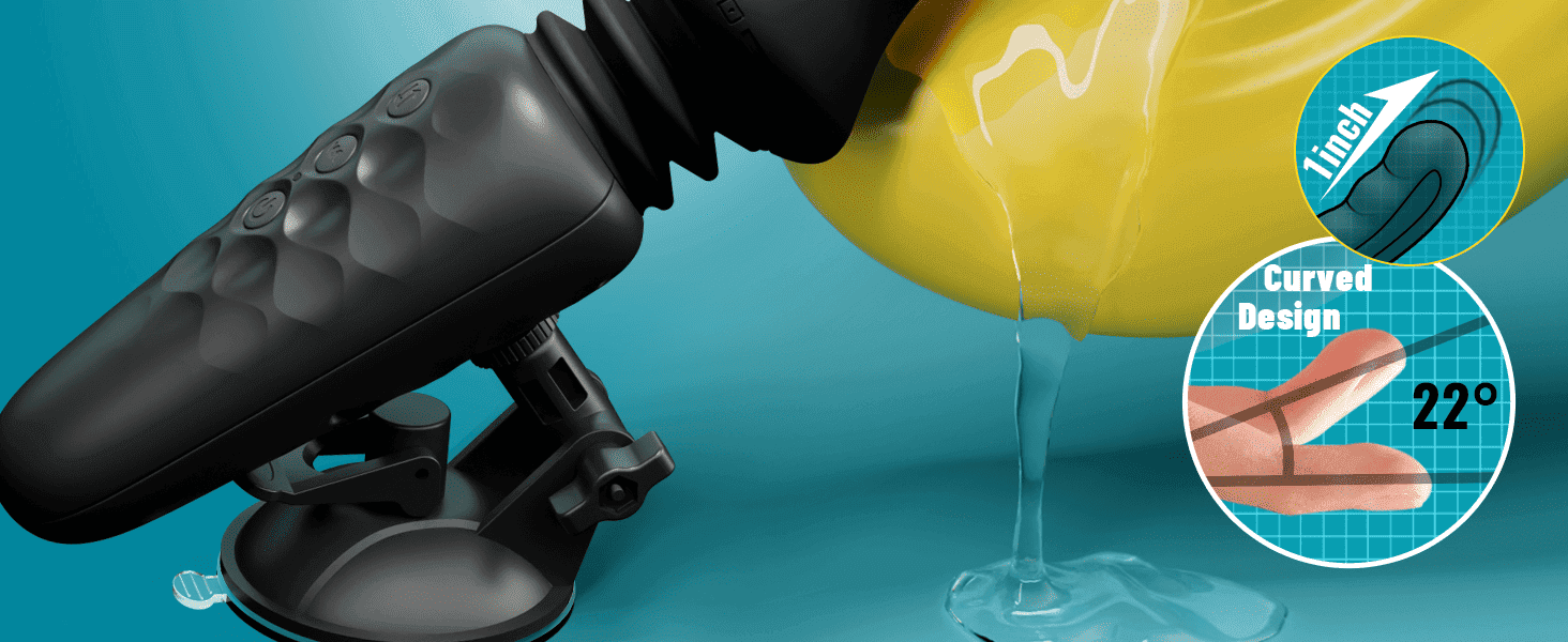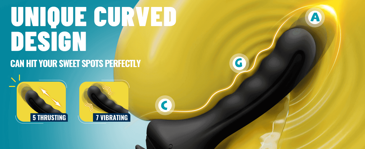 Curved for G-Spot & P-Spot pleasure • Hands-free suction • Intense thrust & vibration in one machine